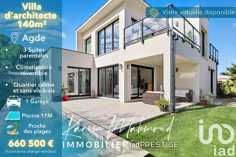 iad France - Karim Mahmoud vous propose: Villa d’architecte 140 m² – Prestations de luxe