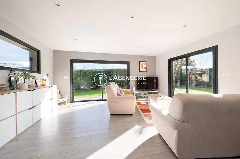 ainsi qu'un agrandissement de 26 m² aménagé en salon, avec accès direct à une grande terrasse.