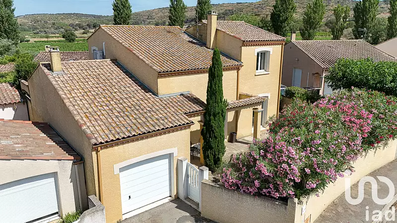 iad France - Antoine Gutierres vous propose: Superbe Maison de 2002, 140 m² hab sur un terrain de 385m2, avec Jardin et Garage à Bizanet, dans un Cadre Paisible et Verdoyant!