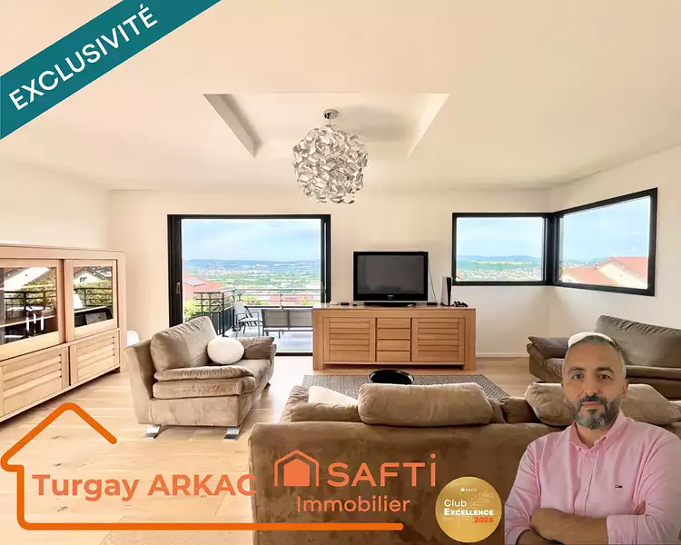 Sur les hauteurs paisibles de Domarin, dans un secteur très recherché, cette magnifique villa de plain-pied construite en 2021 vous séduira par son ambiance chaleureuse, intime et raffinée. Le terrain paysagé de 815 m² est accessible par un escalier intégré au jardin, permettant de profiter pleinement de l’extérieur.