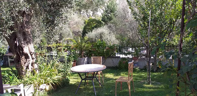 salon, salle de bain, salle d'eau, 2 terrasses et jardins, accès voiture, belle exposition, quartier résidentiel, eau de source sur terrain,