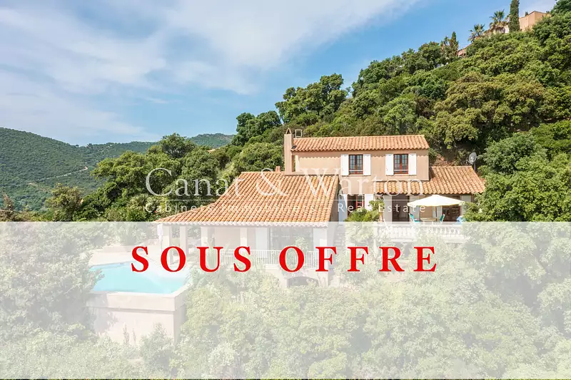 SOUS OFFRE PAR CANAT & WARTON. CANAT & WARTON Golfe de Saint Tropez, présente EN EXCLUSIVITÉ cette villa à Cavalaire avec une vue mer panoramique à 180 degrés. Idéalement située dans un lotissement recherché, cette villa est de 140 m2 sur un terrain arboré de 1 511 m2 offrant une vue panoramique. Piscine à débordements. Composée par un spacieux séjour avec cheminée, salle à manger avec une cuisine ouverte équipée et son cellier et ouvrant sur 2 terrasses, 4 chambres, salle de douche, salle de bain & 2 wc. Plusieurs terrasses dont l'exposition principale est plein Sud. Un double garage et plusieurs places de parking viennent compléter ce bien. Flavien GRANDMAIRE, directeur de l'agence CANAT & WARTON Golfe de Saint Tropez est à votre disposition au 143 Rue du Port 83240 Cavalaire 06 47 52 46 42/ . WE SPEAK ENGLISH-WIR SPRECHEN DEUTSCH. Les informations sur les risques auxquels ce bien est exposé sont disponibles sur le site Géorisques www.georisques.gouv.fr