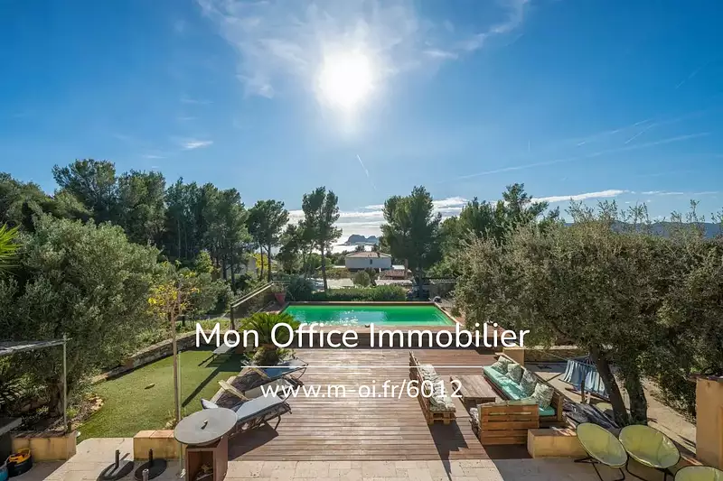 L'Office Immobilier de la Ciotat vous présente à la vente une bastide contemporaine sur un terrain plat et paysagé de 1814 m² avec de très belles vues sur la mer, les pinèdes et les collines.