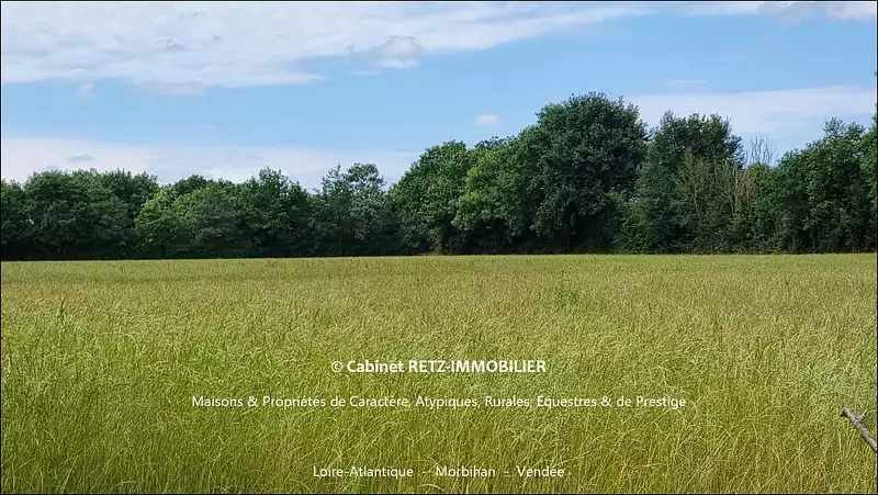 SOUS PROMESSE DE VENTE - À CHALLANS (85300) en Vendée, au calme, en retrait de la ville, sur 5,6 hectares, Propriété comprenant : Maison de plain-pied composée de : Entrée, séjour avec cheminée insert, salle-à-manger, cuisine labo, chaufferie/cellier/entrée de service, grande et confortable suite parentale (Chambre 1 avec rangements + pièce dressing + grande salle d'eau avec bain balnéo, douche italienne, meuble double vasque et wc suspendu séparé), chambres 2 et 3 avec rangements, bureau (ou chambre 4), salle de bain, WC indépendant. En complément : Terrasse carrelée avec store-banne électrique et paravents rétractable ; Garage fermé et réserve environ 45m2 ; Carport environ 45m2 ; Abri/bûcher ; Parking ; Joli jardin paysagé et clos (environ 2 700m2), robot de tonte récent ; Potager ; Hangar d'env. 270m2 comprenant grand espace de stockage (idéal aménagement de boxes pour propriétaire de chevaux), atelier et salle de détente ; 5,5 hectares de prairie de belle qualité (3 grandes prairies avec haie bocagère) en partie drainés. Tout cela au calme et en parfait état d'entretien, en campagne, à proximité de toutes les commodités, à 20mn des plages, 25mn de LA ROCHE SUR YON et 40mn de NANTES. Complément d'informations et rendez-vous de visite sur demande. Ce bien vous est présenté par le Cabinet Retz-Immobilier, spécialiste de l'immobilier de Caractère, Atypique, Rural, Équestre, d'Exception & de Prestige en Loire-Atlantique, Morbihan et Vendée. - @MNNRICD - Contact : Chris DUBOIS. Mandat exclusif de vente no110915-219130. - Annonce rédigée et publiée par un Agent Mandataire -