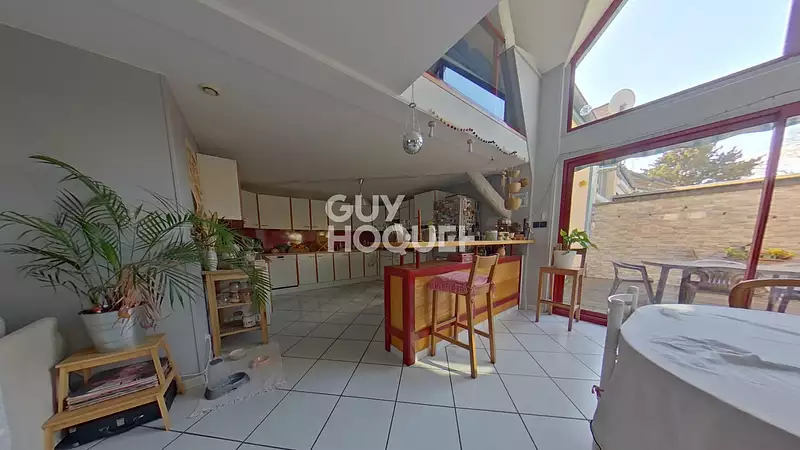 A Chalon sur Saône, cette maison de ville lumineuse d'environ 145m² habitable (108m² en loi carrez) offre un cadre de vie agréable et lumineux. Idéale pour une famille, cette propriété se compose de 5 pièces bien agencées. De plain-pied vous bénéficierez d'une cuisine américaine ouverte sur un vaste séjour avec plafond style cathédrale, baigné de lumière et offrant un espace de vie chaleureux. Accès direct à une terrasse privative d'environ 35m² et sans vis-à-vis, idéale pour profiter des journées ensoleillées.- Pour plus de commodité, le RDC dispose aussi d'une salle d'eau rénovée récemment avec toilettes. A l'étage un palier distribue deux chambres spacieuses, dont une avec salle de bains privative et un second wc pour plus de confort, et un bureau. La maison est équipée d'un chauffage au sol électrique et d'une climatisation. Elle dispose d'un garage fermé pour votre véhicule, ajoutant une touche de praticité à votre quotidien. Cette maison est un véritable coup de coeur, alliant modernité et fonctionnalité. Ne manquez pas l'opportunité de visiter ce bien rare sur le marché ! Laissez-vous guider ou déplacez-vous librement au sein de la maison grâce à la visite virtuelle Elle est située seulement 15 minutes à pied des établissements scolaires tels que le Lycée Nicéphore-Niepce et l'École primaire Publique Pierre Vaux et à proximité de multiples commerces. Cette maison a une classe énergie D (233 kWh/m² annuels). Quant à la classe climatique, cette dernière est notée B (7 Kg CO2/m²/an). Le montant moyen des dépenses annuelles d'énergie pour un usage standard estimé entre 1530 euros et 2130 euros et indexé sur l'année 2021 (abonnements compris). Cette maison est proposée au prix de 235000 euros. Les honoraires sont à charges VENDEUR. Les informations sur les risques auxquels ce bien est exposé sont disponibles sur le site Géorisques : www.georisques.gouv.fr. Ne manquez pas cette opportunité, contactez l'agence Guy Hoquet CHALON-SUR-SAÔNE pour plus d'informations ou pour organiser une visite.