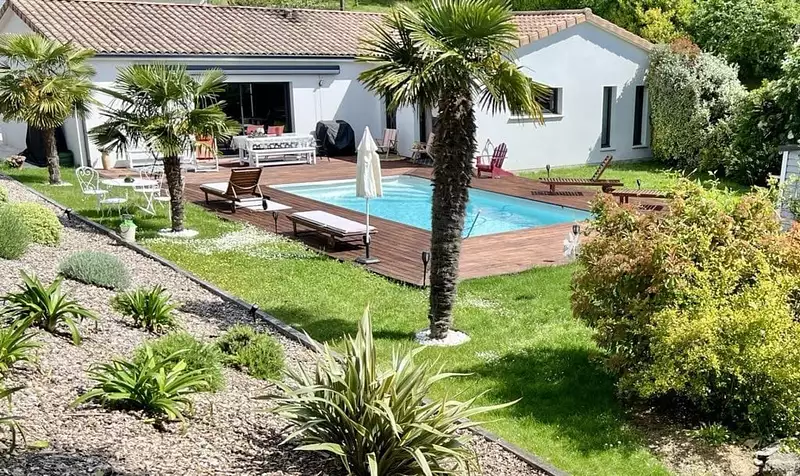 Excellentes prestations pour ce bien se situant à 5 minutes du centre de Chaniers .De plain pied et d'une surface au sol de 183 m² , vous apprécierez la fluidité et la générosité des espaces ainsi que le choix de ses matériaux haut de gamme. Une large pièce de vie de 57 m² avec une cuisine entièrement équipée donne sur la terrasse exposée plein Sud. Pour votre confort , vous disposez d'une piscine pour vous rafraichir lors des soirées d'été . Ce bien comprend quatre chambres dont une suite parentale avec un dressing et une salle d'eau, une salle de bain, deux WC , un cellier. Son double garage carrelé et motorisé assure l'emplacement pour au moins deux véhicules. Son terrain entièrement clos et arboré a été pensé par un paysagiste professionnel .