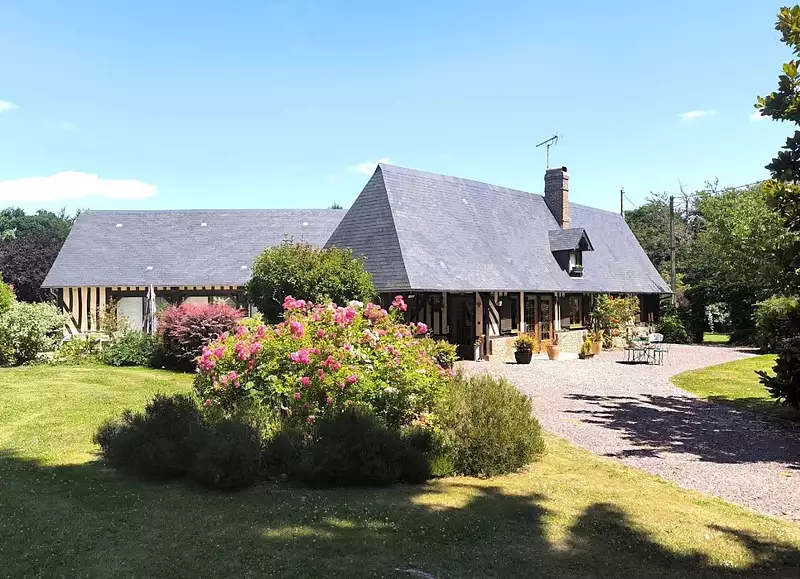 Au bout dune impasse, dans un cadre champêtre et à labri des regards, venez découvrir cette belle et grande propriété normande parfaitement entretenue. Accueillit par une jolie entrée charretière, la maison se compose au rez-de-chaussée dune grande pièce de vie denviron 60 m² comprenant un salon et coin repas avec cheminée ancienne ainsi quune salle à manger ouverte sur la piscine intérieure. Lespace piscine vous offre de larges ouvertures permettant un accès à une vaste terrasse parfaitement exposée. Une cuisine aménagée et équipée, un cellier, une chambre avec salle de douches ainsi que des wc complètent ce niveau. A létage, vous trouverez trois agréables chambres dont une avec salle de douches et wc. Vous bénéficierez également dun bureau en mezzanine offrant une large vue sur la piscine et sur la salle à manger rendant ainsi cette pièce très conviviale. A lextérieur, au calme et sans aucune nuisance, le parc arboré de 4397 m² est agrémenté dune jolie dépendance à usage de local technique et bucher ainsi quun garage (grenier au-dessus) avec charreterie pouvant accueillir facilement deux voitures. La grande terrasse, le boulodrome ainsi quune belle zone de terrain plat vous offriront de belles perspectives de jeux pour vos week-ends à la campagne. Rare à la vente, venez vite découvrir cette charmante propriété idéalement située ! Agent Commercial : Arnaud CHALOTS RSAC N° 452 568 975 Nous vous rappelons que suite à l'article l.561-5 du code monétaire et financier, la copie de la pièce d'identité de tous les visiteurs vous sera demandée avant la visite. Honoraires : 29 000 TTC (5,92 %) inclus charge acquéreur (490 000 hors honoraires)