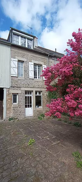 Une maison de ville de 140 M2 en pierres couverte en ardoises sur 3 niveaux avec en rdc une entrée, un salon ouest , une cuisine exposé est, avec un accés espace extérieur.