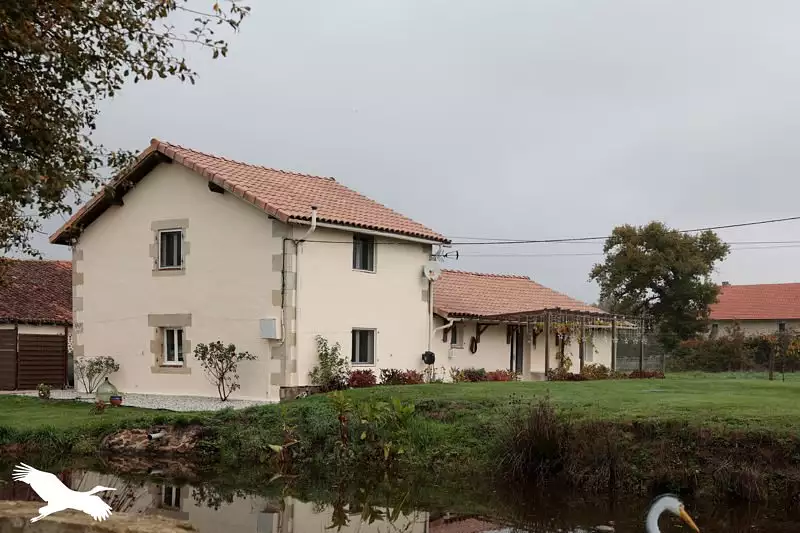 Au calme, maison ancienne rénovée et spacieuse comprenant au RDC, une véranda, une cuisine aménagée et équipée ouverte sur le séjour, un salon chaleureux avec un poêle à bois, une chambre avec dressing, une salle d'eau avec WC, à l'étage, un palier, 2 chambres, une salle de bains avec WC. Dépendance d'environ 300 m². Mare. Proposition d'aménagement virtuel non contractuelle en dernière photo.