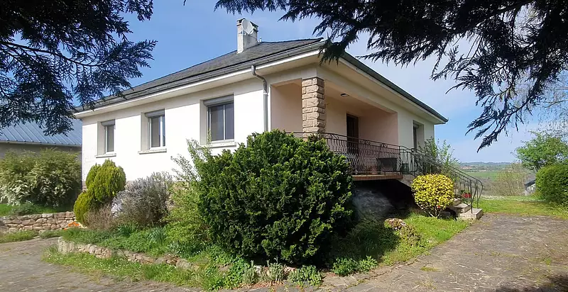 Cette maison des années 60 procure une réelle sensation d'espace. Construite en brique et pierre, elle est très lumineuse et bien entretenue. Elle offre une surface habitable de 140 m² et une surface utile de 450 m² grâce au sous-sol et surtout à la très grande grange située à côté.La propriété dispose en outre d'une piscine couverte privative. Le tout est posé sur un terrain de près de 6000 m² avec une belle vue dominante sur la campagne environnante. Cette maison est située dans un petit village calme. Quelques marches d'escalier mènent à une terrasse. On pénètre dans la maison par un large couloir qui dessert le séjour sur la droite, la cuisine sur la gauche puis en prolongement un petit salon et deux chambres. Là, le couloir mène à une autre chambre ainsi qu'à des toilettes et une salle d'eau avec une douche à l'italienne récente.Il est ainsi possible de vivre sur un seul niveau. A noter que les cloisons (couloir/séjour/cuisine) pourraient être supprimées. Un escalier intérieur mène au sous-sol qui accueille le garage, la chaufferie, un grand cellier et une chambre supplémentaire. Ce sous-sol pourrait constituer un logement à lui seul. A quelques mètres de là se trouve une grange récente en bon état qui offre de grandes possibilités pour le stockage ou comme atelier. La propriété est reliée au tout-à-l'égout. La maison est habitable immédiatement et ne nécessite pas de travaux impératifs. Les informations sur les risques auxquels ce bien est exposé sont disponibles sur le site Géorisques : www.georisques.gouv.fr »