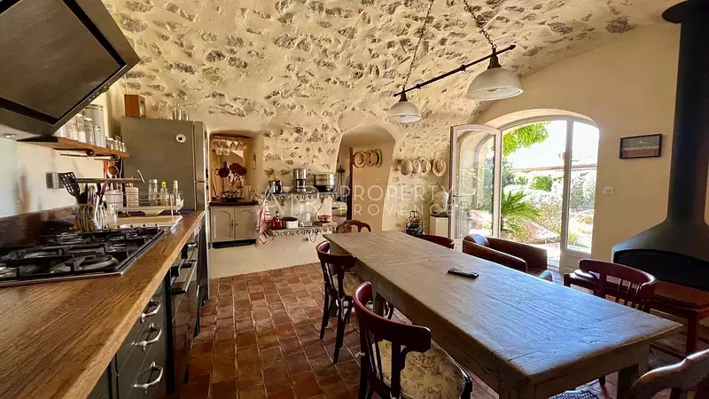Avec ses 6 pièces réparties sur 4 chambres et 2 salles d'eau, ce Mas offre un confort moderne dans un cadre authentique avec le charme de l'ancien (pierres et poutres apparentes, plafonds à la française, pièces voûtées, etc.)