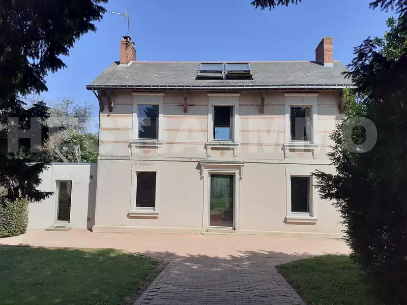 Belle maison de maître atypique, avec son extension à toit plat, mais aussi avec l'agencement de sa chambre à l'étage et de sa salle de bains attenante, ainsi qu'avec ses grandes fenêtres en alu. et ses portes d'entrées sur pivot.