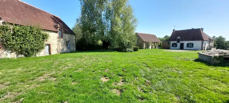 Région Longny au perche, dans belle campagne, sur une parcelle de 11.8 hectares, bel ensemble authentique percheron composée d'une habitation : une cuisine et salle à manger avec cheminée, salon de 32 m², arrière-cuisine/buanderie, une chambre avec cheminée, SDE avec WC, grande pièce à usage de dortoir avec cheminée. Grenier et caves sous maison. Chauffage central. Quatre bâtiments typiques à usage : d'anciennes écuries, d' ancien pressoir, d'atelier, de garages, de hangars et de grange. Terrain de 11.8 hectares de prairie et 3 hectares de bois. Sans nuisance, accès chemin et forêt, en bon état de gros œuvre. AGENCE BENOIST ORPI 02 33 25 41 23