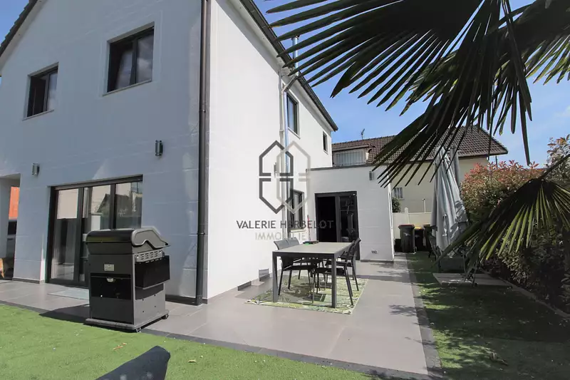 Très agréable maison moderne de 2020 avec de belles prestations, elle vous accueille par une entrée avec rangements, un très beau séjour lumineux avec poèle à granules de plain pied sur terrasse, cuisine ouverte entièrement équipée et aménagée ouvrant sur jardin, dégagement avec wc et lave mains, garage. A l'étage : vue sur la tour Eiffel ! Belle suite parentale avec dressing et salle d'eau, 2 chambres avec rangements dont une avec salle d'eau, ainsi qu'une grande salle de bains avec wc. Sous-sol total aménagé (salle de jeu, bureau, buanderie, rangements), des combles aménagées. Prestations de qualité, maison ecologique, triple vitrage, volets motorisés, pompe à chaleur, chauffe-eau thermo dynamique, climatisation reversible. En savoir plus prendre RDV : 06.60.53.74.00