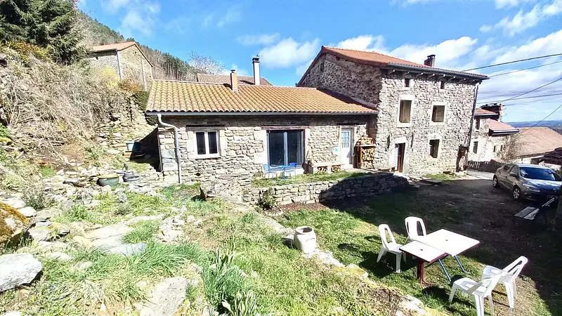 Uniquement chez RCI : A 5 minutes de RETOURNAC, dans un hameau tranquille et en hauteur, belle maison en Pierres, récemment rénovée avec matériaux naturels et de qualité, environ 140 m2 habitables avec : Cuisine environ 25 m2, Salon environ 37 m2, 4 Chambres dont 1 en R-de-C, Bureau, Salle d'Eau et WC, Terrasse plein SUD, Terrain environ 440 m2 + Jardin environ 300 m2 + Terrain non attenant environ 1400 m2, Habitable de suite, idéal pour une famille, beau cachet. Contact : Bernard MOULIN : O6 85 67 69 2O.