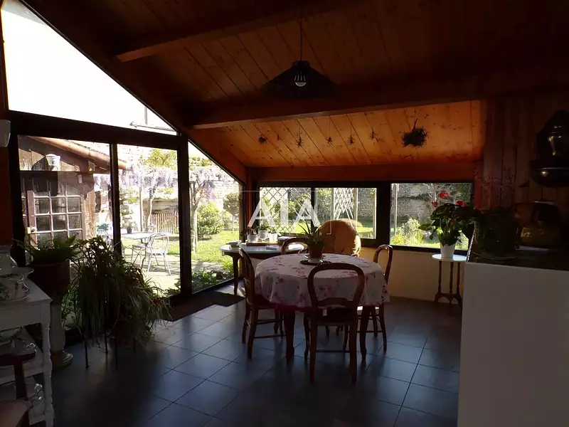 La maison a été rénovée entièrement, toiture refaite en 2010, elle comprend, sur différents niveaux, une cuisine aménagée équipée, salon, véranda-séjour, 4 chambres, 2 salles d'eau, toilettes, buanderie, un grand garage.