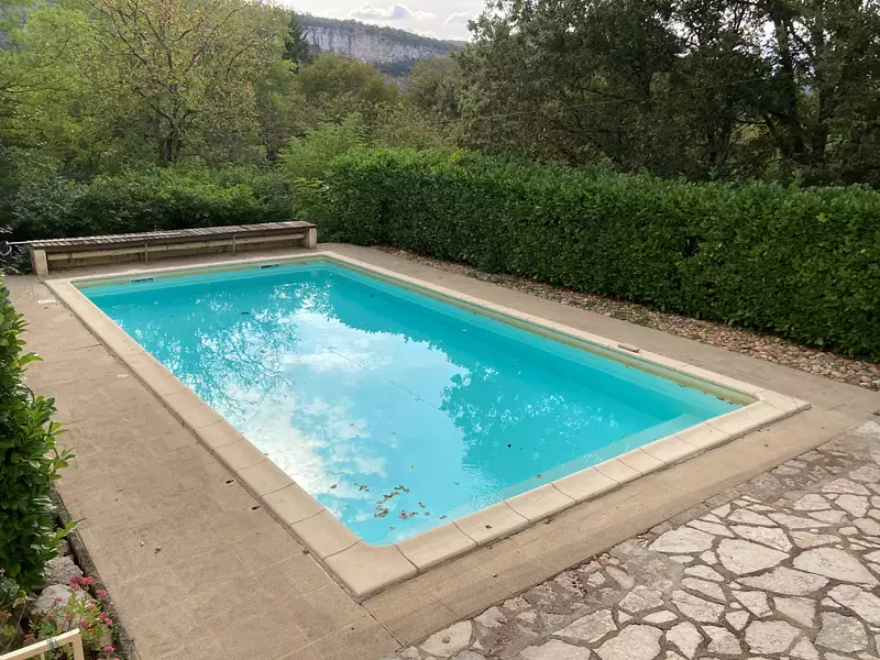 Vallée du Lot Est proche de Saint Cirq Lapopie maison d'environ 140 m² de surface habitable avec piscine sur un terrain boisé d'environ 3.861 m². Rez de chaussée : garage, chaufferie, caves, wc. Etage : terrasse. Hall d'entrée, séjour avec cheminée insert, cuisine, 4 chambres, salle de bains, wc. Chauffage central fioul et cheminée insert. Fenêtres simple vitrage. Volets bois. Piscine -5 x 10 - Terrain boisé. Les informations sur les risques auxquels ce bien est exposé sont disponibles sur le site Géorisques www.georisques.gouv.fr