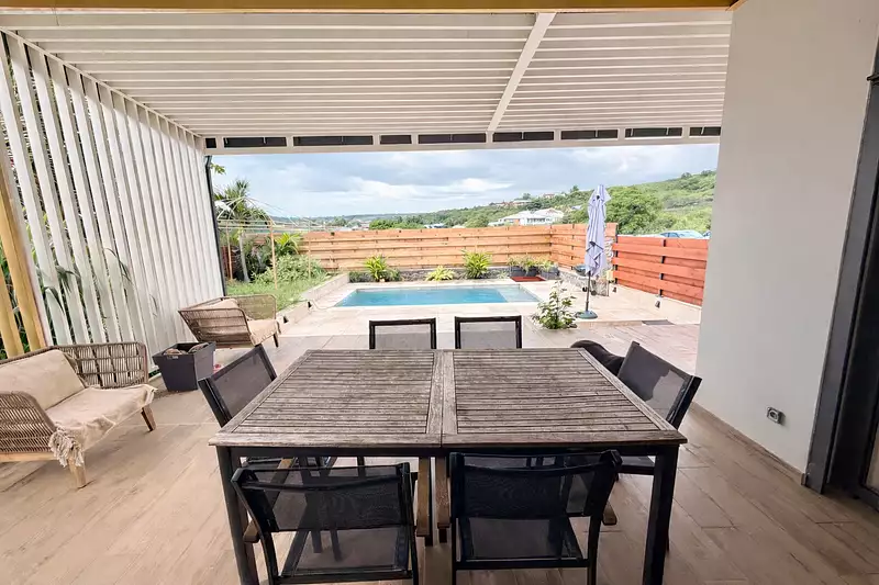 Je dispose d’un très bel extérieur, jardin, piscine, grande varangue, pour des journées de détente inoubliables. Vous accédez à la villa par le portail automatique qui vous permettra de stationner un ou deux véhicules dans la cour. Un parking visiteur est disponible pour les amis.