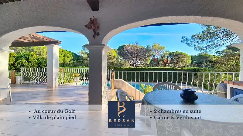 L'équipe BERSAN Immobilier vous propose à l'achat cette belle villa entièrement de plain-pied, idéalement située dans un domaine prisé de Valescure, au calme et à pied des commerces. Vous serez séduits par son environnement verdoyant, à l'abri des regards, qui en fait un véritable havre de paix. Elle se compose d'une entrée avec placard, d'un double séjour lumineux, d'une salle à manger ouverte sur une cuisine aménagée et équipée, d'une buanderie, de deux chambres en suite avec chacune salle d'eau et WC, ainsi que d'un WC invité. Une mezzanine surplombant le séjour offre un espace supplémentaire pouvant servir de bureau ou de chambre d'appoint. Édifiée sur un terrain paysager de plus de 1 400 m², la propriété offre une piscine au sel 5x10 m, une terrasse plein sud partiellement couverte avec espace barbecue, une cave et un abri voiture. Plusieurs stationnements sont également possibles sur la parcelle. Votre agence BERSAN Immobilier reste à votre disposition pour de plus amples informations ou pour organiser une visite.