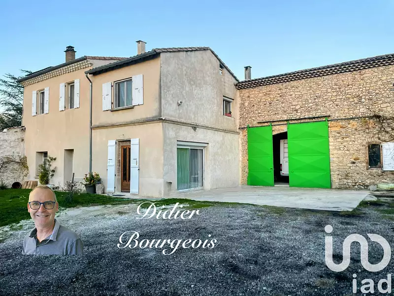 iad France - Didier Bourgeois vous propose: À vendre dans la campagne de Saulce sur Rhône, à mi-chemin entre Montélimar et Valence un corps de ferme rénové sur 2 niveaux d'environ 158m² avec cours intérieur sur une parcelle de 10527m².