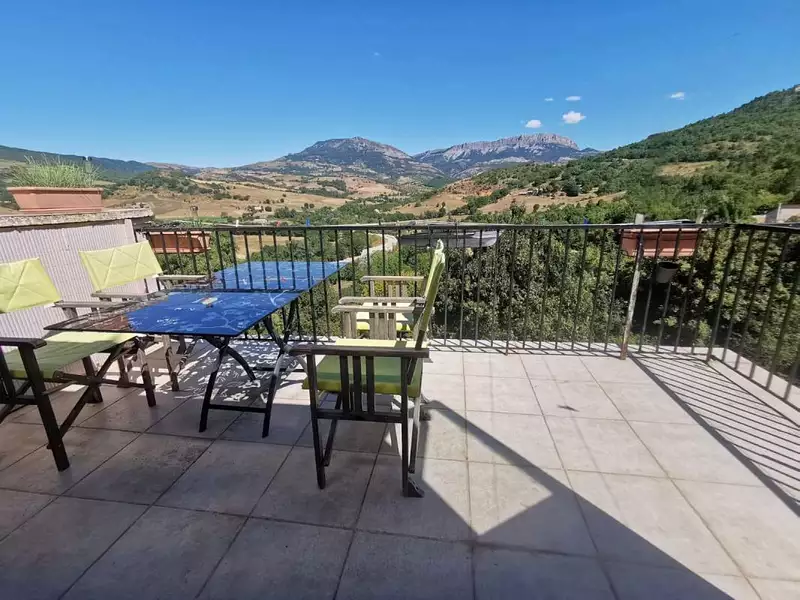 Au 2éme étage : un appartement avec salon/séjour/cuisine, deux chambres, un bureau, une salle de bains, une véranda avec coin cuisine donnant sur une terrasse avec vue imprenable sur la vallée de THOARD.