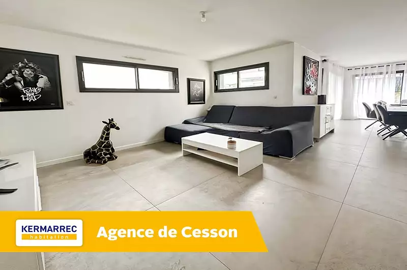 THORIGNE FOUILLARD KERMARREC HABITATION vous invite à découvrir cette maison contemporaine idéalement située dans une rue calme, avec une belle exposition Ouest. Dès l'entrée, vous serez séduit(e) par une vaste pièce de vie lumineuse, ouverte sur une cuisine moderne, entièrement aménagée et équipée. Le rez-de-chaussée comprend également une chambre avec salle d'eau privative, une buanderie et un double garage. A l'étage, une mezzanine dessert trois chambres ainsi qu'une salle de bains. Vous apprécierez la qualité des prestations et l'excellent état général de cette maison, prête à vous accueillir sans travaux. Il ne vous reste plus qu'à poser vos valises ! classe énergie : B Réf. 12322 "Les informations sur les risques auxquels ce bien est exposé sont disponibles sur le site Géorisques : www. georisques. gouv. fr '. " Prix FAI : 499 950 euros dont 5.03 % honoraires TTC à la charge de l'acquéreur.