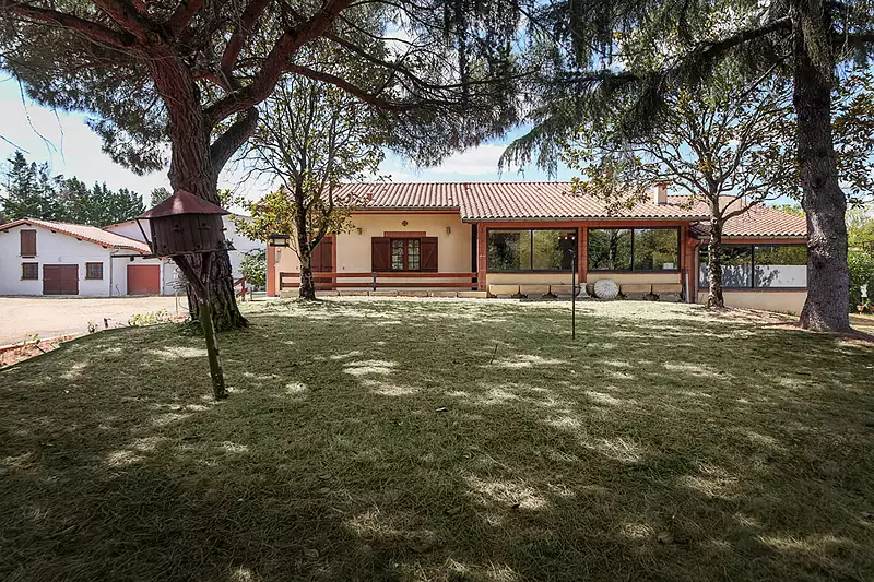 Au nord de Toulouse, secteur Launaguet, ne manquez pas cette maison de plein pied de 130m² sur une magnifique parcelle de 2200m², avec combles aménageables, véranda et garage transformable en habitation afin de laisser plusieurs possibilités d'agrandissements aux futurs occupants. Une dépendance de 60m² offre également plusieurs possibilités comme pool house pour les personnes souhaitant créer une piscine, garage, ou appartement indépendant, cette maison est dans son jus mais elle a toujours été bien entretenue, proximité immédiate du bus (6.00 % honoraires TTC à la charge de l'acquéreur.)