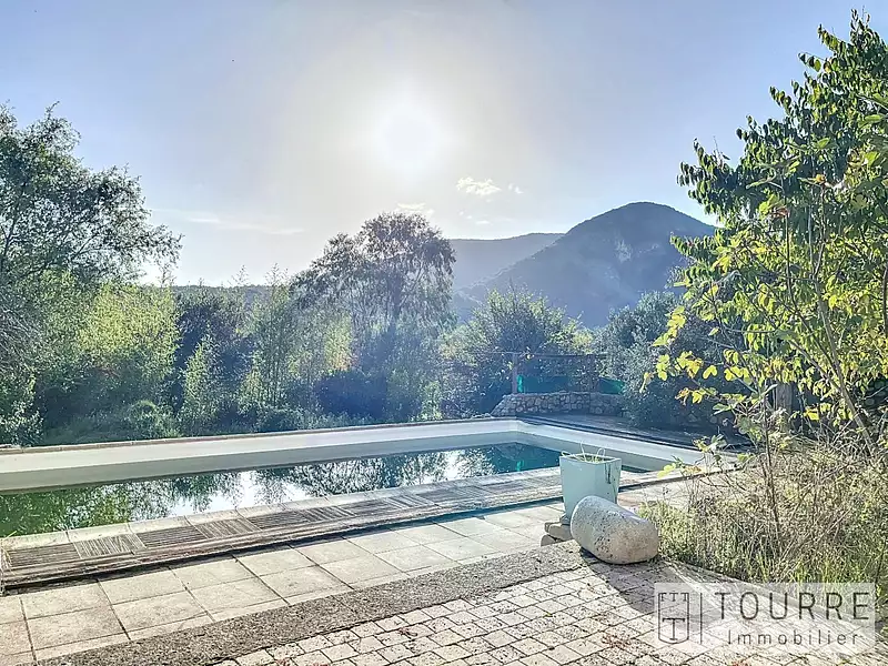 C'est dans un secteur prisé du Sud Ardèche, au calme, entourée de vergers et offrant un cadre de vie agréable que cette ancienne ferme évolue. Érigée sur un vaste terrain de plus d'1 hectares entièrement exploitable dont une partie constructible, elle a été initialement la propriété d'une famille travaillant la vigne et productrice de pêches. Les générations et propriétaires qui se succédèrent ont fait évoluer cette belle demeure tout en concevant l'âme et le charme indéniable des mas en pierre Ardéchois. L'habitation principale d'environ 140 m² comprend 2 chambres, un dortoir et surtout une pièce de vie avec vue imprenable sur la piscine, les nombreux arbres (plakminiers, cognassiers, oliviers, poiriers ...) et encore plus loin un escarpement rocheux. Attenants mais non communiquant à cette partie habitable, 23 m² pouvant faire office de gîte, une grange d'environ 80m² à la hauteur sous plafond extraordinaire, plusieurs caves, un chai , un garage et cerise sur le gâteau un accès privé menant jusqu'à la rivière. Cet ensemble immobilier permet ainsi l'éclosion de bien des projets. Munissez vous d'un peu d'huile de coude pour terminer les rénovations et votre propriété sera exceptionnelle. Chai : lieu où se déroule la vinification Les + : proximité, rivière, panneaux solaires, surface, calme, vue