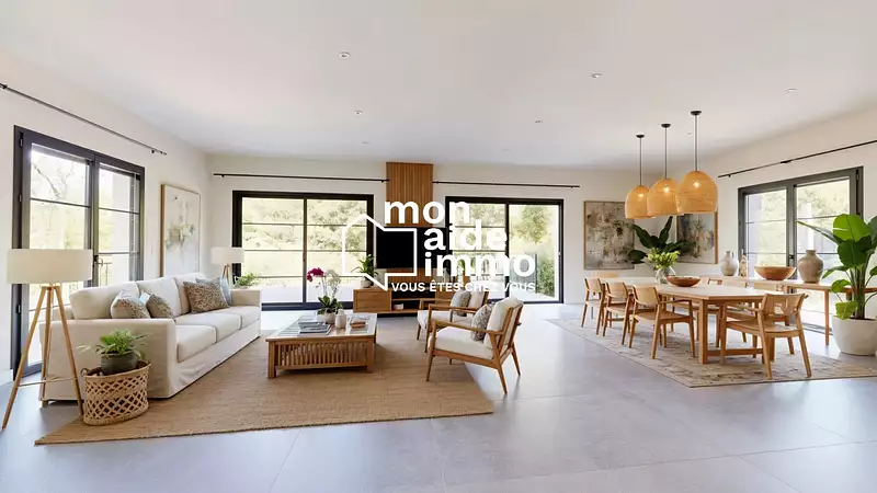 Construite en 2019, cette maison se trouve toujours sous garantie décennale. Elle offre une superbe pièce de vie de 66m², baignée de lumière grâce à ses larges ouvertures donnant sur la terrasse de 30m² et le jardin.