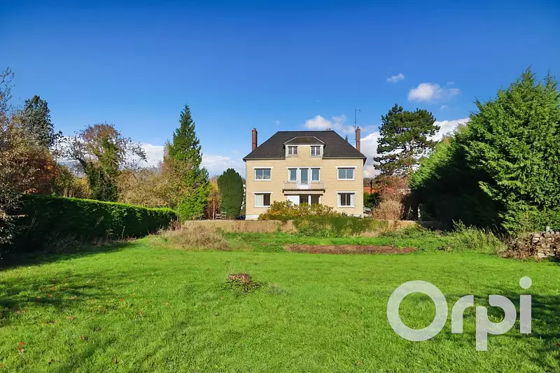 Gisors à quelques pas du centre ville et de la gare SNCF, Belle maison en pierre de taille, offrant: Hall d'entrée, un beau séjour double de 49m² avec cheminée insert avec accès terrasse pour profiter de la superbe vue, cuisine aménagée et équipée, wc avec lave mains, A l'étage: Palier couloir, 3 chambres, salle de bains, wc, salle d'eau, grenier aménageable, chauffage central gaz de ville avec chaudière récente, double vitrage.