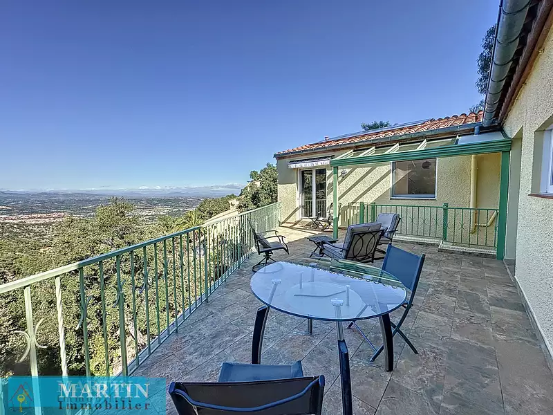 Dans les hauteurs des 'Chartreuses', dans un environnement paisible et calme, à seulement quelques minutes en voiture de la ville du Boulou, cette jolie villa offre une vue imprenable.La maison dispose en rez-de-chaussée d'un séjour lumineux d'environ 36 m2 avec un poêle à bois, une salle à manger avec cuisine équipée donnant sur une terrasse, idéale pour manger en plein air. Une suite parentale d'environ 28 m2 composée d'une salle d'eau / WC, bureau et dressing donnant également sur la terrasse. En rez-de-jardin la partie 'nuit' qui offre 3 chambres dont une disposant d'une porte fenêtre permettant d'accéder à une terrasse et au jardin, une salle de bains et WC indépendant. Une terrasse couverte, un atelier d'environ 32 m2 et une cave. Climatisation réversible. Chauffe-eau thermodynamique. 8 panneaux photovoltaïques. Double vitrage. Moustiquaires. Volets roulants. 3 récupérateurs d'eau de pluie. Terrain 1560m2.