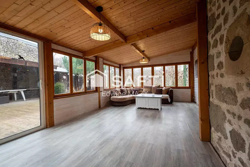 Au rez-de-chaussée une grande cuisine équipée avec un poêle à granulés performant , assurant le chauffage de la partie haute de la maison. Une spacieuse pièce de vie ouverte sur une véranda lumineuse de30 m2 , idéale pour profiter de la lumière naturelle toute l'année , une chambre de 12 m2 , salle d'eau et une buanderie complète ce niveau. A l'étage deux chambres lumineuses ,une salle d'eau et un wc.
