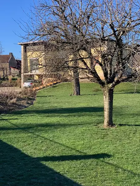 A l'extérieur, grande terrasse Nord- Est, grand terrain engazonné et arboré, équipé de deux robots de tonte, une dépendance poulailler