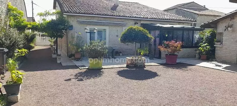 Charmante maison en pierres, avec dépendances et plus de 3000 m2 de terrain cloturé, à la campagne, dans un village de la commune d'Aigre, au calme et dans un environment de verdure.