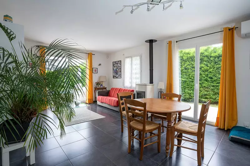 Maison plain pied arveyres nous vous proposons en exclusivité une maison de plain pied entre libourne et bordeaux, idéalement située à proximité du centre bourg ,des écoles et du collège. elle est composée d'une cuisine ouverte sur un salon-séjour, un cellier buanderie, 4 chambres, 2 salles d'eau avec wc. la maison est équipée d'une pompe à chaleur, d'un poêle à granule. la maison est située sur un terrain de 891m² clôturé. le jardin bénéficie d'un récupérateur d'eau de pluie enterrée de 2000l. une piscine et un abri de jardin viennent compléter ce bien. -