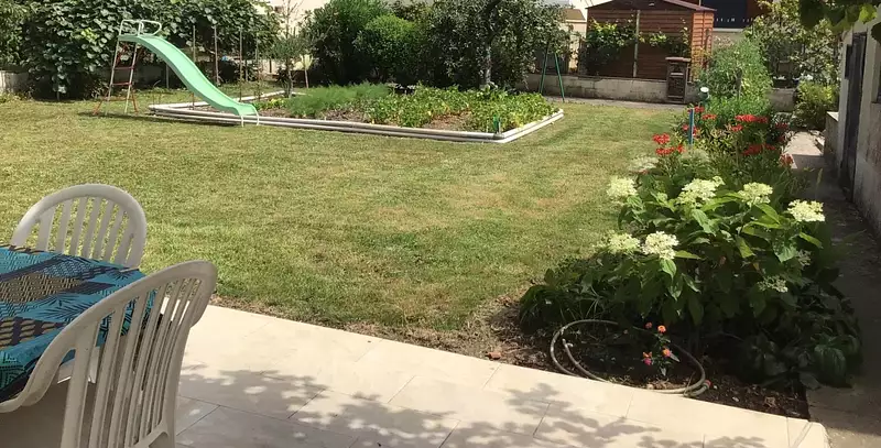 En extérieur, sur l’arrière de la maison : une terrasse et un petit bâtiment dans lequel vous pourrez ranger votre salon de jardin et autres outils.
