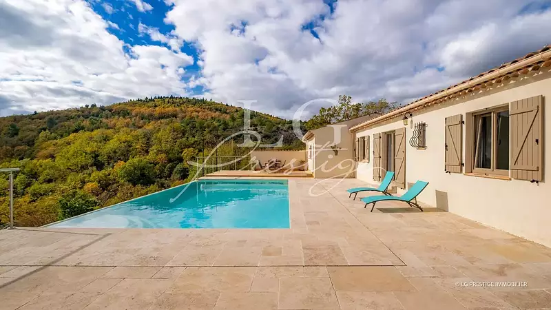 Votre agence LG Prestige Immobilier de Montauroux vous propose, en co-exclusivité, cette superbe maison individuelle de plain-pied, idéalement située au calme absolu, à seulement 10 minutes du village de Callian, dans un environnement paisible.