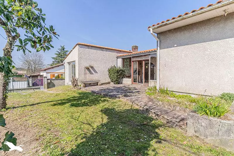 Eysines Bourg, maison d'habitation de plain pied de près de 142m² avec grand séjour donnant sur terrasse, 5 chambres, 2 points d'eau et une véranda. Jardin autour d'environ 550m², garage en sous-sol d'environ 116m². Prévoir travaux de rénovation.