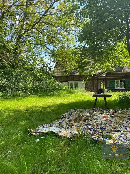 Ravissante longère située dans un écrin de verdure, édifiée sur un beau terrain arboré de plus de 2 000m² dans un secteur calme à 5 minutes de la A1.