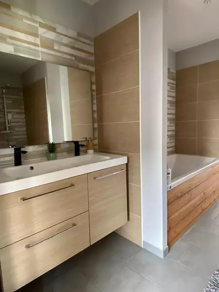 Deux chambres supplémentaires se partageant une grande salle de bain avec baignoire et douche.