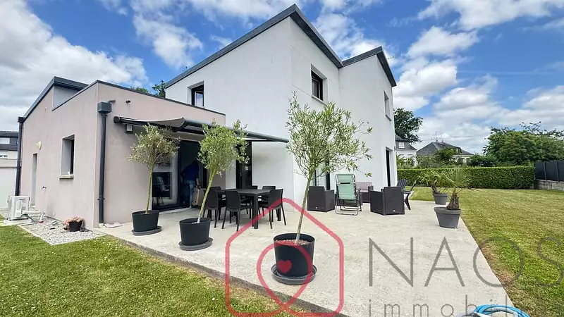 Maison contemporaine de maître d'œuvre - Prestations haut de gamme confort absolu 430000 Euros ?? Pontivy - Quartier résidentiel prisé, à 500 m du centre-ville Dans un secteur calme et recherché, à deux pas du centre-ville de Pontivy, cette maison contemporaine de 143 m², conçue par un maître d'œuvre, séduit par sa qualité de construction, son architecture soignée et son niveau de confort exceptionnel. ? Un cadre de vie privilégié : Terrain clos et paysager de 693 m², orienté plein sud Superbe terrasse de 55 m², idéale pour recevoir ou se détendre Grand garage de 28 m² avec grenier pour stockage supplémentaire ?? Confort performance énergétique : Pompe à chaleur aérothermique avec plancher chauffant intégral Cuve enterrée de 5000 L alimentant WC et machine à laver : économies d'eau à la clé Store banne électrique pour une gestion optimale de l'ensoleillement ??? Agencement moderne et lumineux : Hall d'entrée isolé du salon par porte à galandage Spacieuse pièce de vie traversante, ouverte sur la terrasse et le jardin Cuisine indépendante avec accès discret, elle aussi séparée par une porte à galandage Une chambre en rez-de-chaussée, salle de bain et WC séparés ??? À l'étage : Coin bureau pour télétravail ou espace lecture Trois chambres, dressing sur mesure, rangements intégrés Seconde salle de bains et WC ?? Prestations haut de gamme : Matériaux de qualité sélectionnés avec soin Excellente isolation thermique et phonique Finitions intérieures élégantes et contemporaines Confort de vie optimisé dans chaque espace ?? Un bien rare, offrant un parfait équilibre entre modernité, performance et sérénité, le tout à pied des commodités (commerces, écoles, restaurants, cinéma...). ?? À visiter sans tarder avec NAOS IMMOBILIER - Un véritable coup de cœur vous attend ! Information et visites : Jérome BEUZET - 06 16 30 84 53 - Ville du greffe : AGENT COMMERCIAL EI RSAC LORIENT 820 356 152 La présente annonce immobilière a été rédigée sous l'entière responsabilité de Jérome BEUZET, mandataire indépendant pour NAOS immobilier Réf. 23481 Prix moyens des énergies indexés sur les années 2023 2024 2025 (abonnement compris). Montant estimé des dépenses annuelles d'énergie pour un usage standard : entre 780 € et 1 110 € par an. Prix TTC et Honoraires à charge vendeur TTC Les informations sur les risques auxquels ce bien est exposé sont disponibles sur le site Géorisques : www. georisques. gouv. fr Information et visites : Jérome BEUZET - 06 16 30 84 53 - Ville du greffe : AGENT COMMERCIAL EI RSAC LORIENT 820 356 152 La présente annonce immobilière a été rédigée sous l'entière responsabilité de Jérome BEUZET, mandataire indépendant pour NAOS immobilier