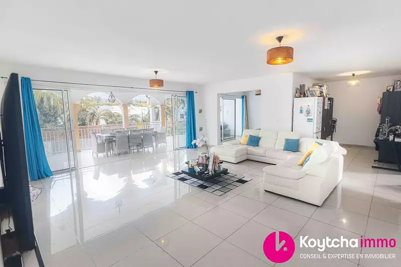 KOYTCHA Immo vous propose cette villa T5 en R+1 d'une surface habitable de 143m² avec grande varangue et piscine, sur une parcelle d'environ 314m², à proximité du cimetière de la Ravine des Cabris.