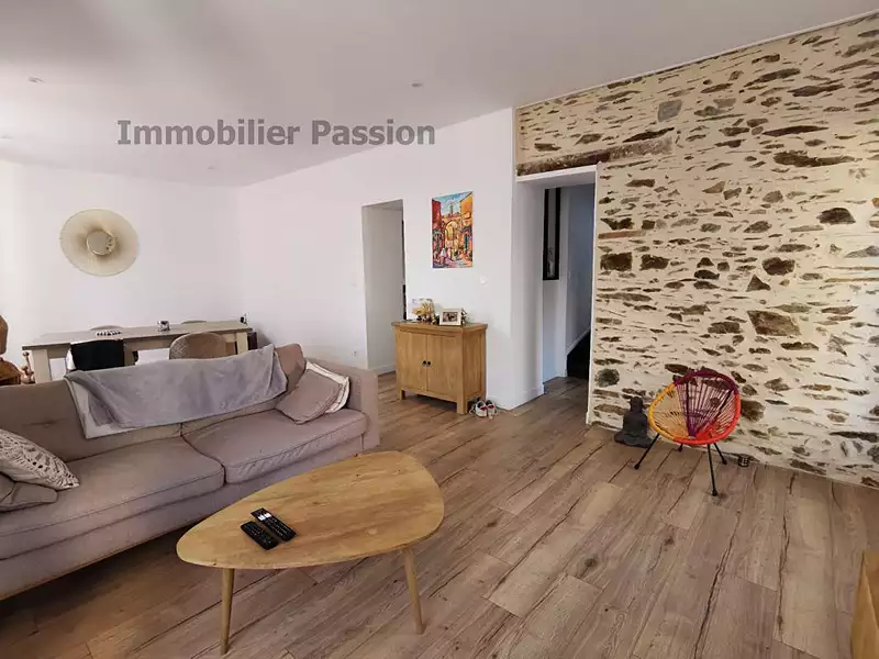 Belle maison ancienne rénovée, atypique, en centre-ville de SEGRE proche toutes commodités: entrée, salon-séjour de 30 m² avec parquet, cuisine aménagée récente, bureau de 8 m²,buanderie, wc,