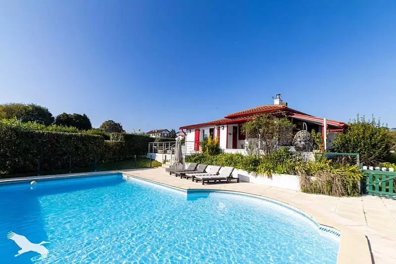 BIDART: aux portes de Biarritz et à moins de 5mn des plages et du bourg, cette agréable maison orientée plein sud, vous offre en plus une vue exceptionnelle sur la Rhune! Une belle pièce à vivre baignée de lumière s'ouvre sur 3 terrasses pour vivre 'dedans-dehors' toute l'année. Plusieurs places de parking sur la parcelle cloturée.