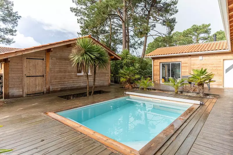 Située à Biscarrosse plage, proche de la forêt, en impasse, au calme. Maison de 2011, ossature bois, plus de 140 m2, 5 chambres.