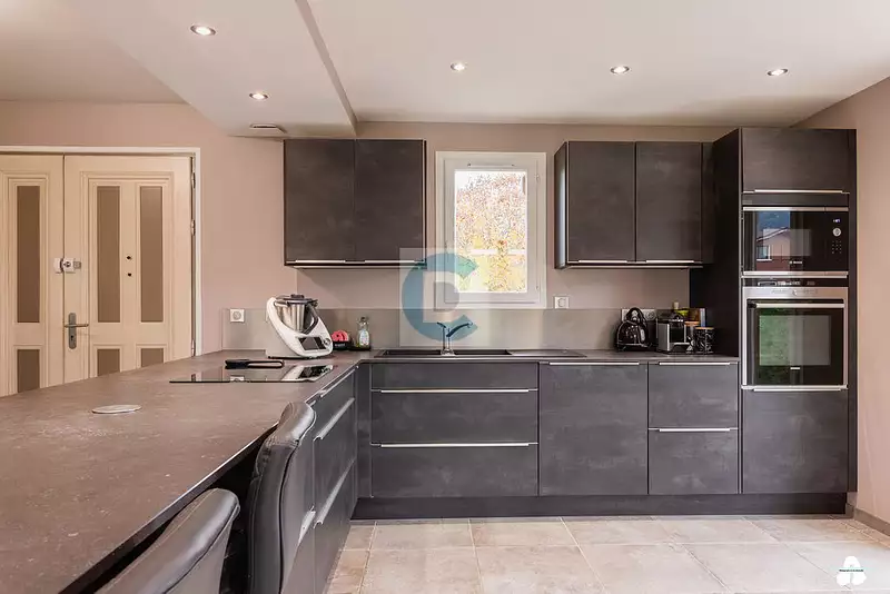 À découvrir à Marignier, cette belle maison familiale de 200 m2 (dont 1440 m2 Carrez) offre un cadre de vie paisible, une vue panoramique sur les montagnes et des prestations de qualité.