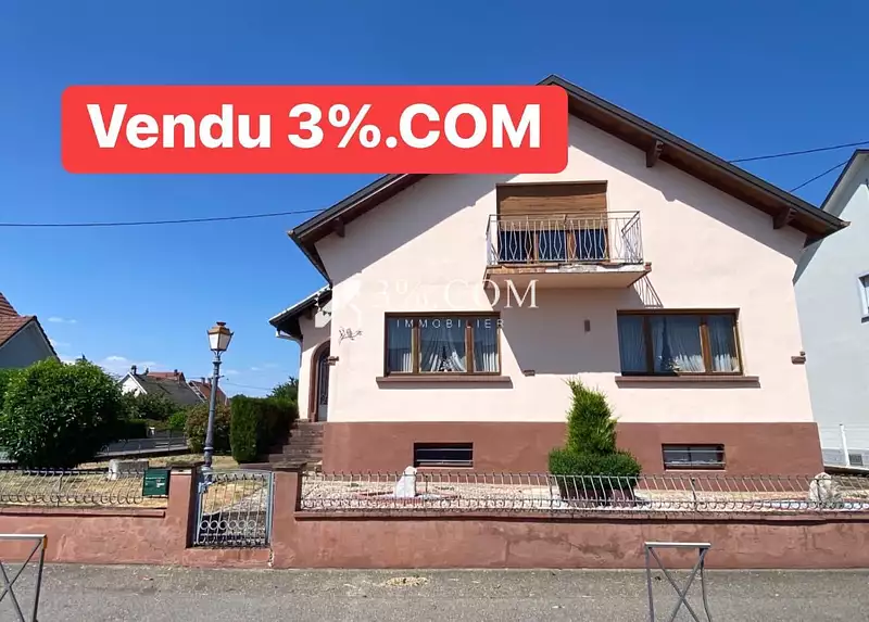 3%.COM -VENDU EXCLUSIVITE- A MOMMENHEIM, grande maison à rénover (144m2) de 1968 sur un terrain de 5,54 ares. -- Beau potentiel pour cette maison qui saura vous séduire par ses volumes et ses possibilités d'aménagement! -- Un jardin, une dépendance avec garage et un sous- sol complètent ce bien -- Vous recherchez une maison à rénover dans une commune dynamique avec toutes les commodités, alors venez visiter ce bien. -- Vous trouverez d'autres photos sur notre site troispourcent. --- Au rez-de-chaussée : - 1 entrée. - 1 cuisine ( 15m2) avec une petite véranda - 1 salon/séjour ( 31 m2) - 1 chambre ( 20m2) - 1 salle de bain -1 toilette séparé ---1er étage: - 3 chambres ( 16,5m2, 12m2 et 11m2) - 1 salle de bain - 1 espace bureau --- Informations diverses: -- prévoir travaux de rénovation ( isolation, fenêtres, électricité, revêtement intérieur...) -- chauffage central fioul -- Sous sol complet ( 80m2) avec garage, espace rangement , chaufferie - - une dépendance de 40 m2 (garage- rangement ) - Logement à consommation énergétique excessive : classe F -- Les informations sur les risques auxquels ce bien est exposé sont disponibles sur le site Géorisques --Contactez Sandrine ROTH 06 58 67 64 84 Du lundi au samedi de 9h00 à 19h00. -- Agence Immobilière ROTH IMMOBILIER Sarl, franchisé 3%.COM, RCS 803 863 638. -- Agence et vitrines à Hochfelden, siège à Gimbrett-Kochersberg. -- Réseau national à honorairesréduits: 3% TTC - Annonce rédigée et publiée par un Agent Mandataire -
