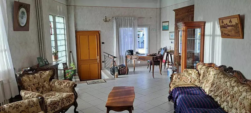Proche centre et tramGrande maison ancienne sur 2 niveaux avec vaste séjour triple, 3 grandes chambres.grand garage double aménageablegrenier, sous sol, courexcellente orientation et distribution intérieure.