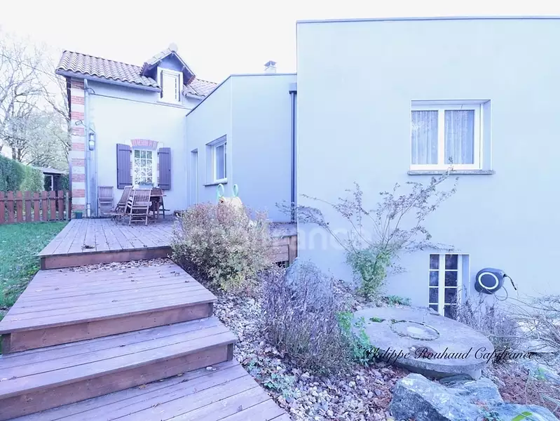 À l'extérieur, profitez d'une piscine, d'un terrain sans vis-à-vis, de garages, d'une cave, et d'une véranda chaleureuse servant d'entrée ou de jardin d'hiver. Depuis la maison, vous accédez facilement à la forêt pour de belles balades au cœur de la nature.