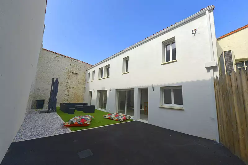 Saujon - Grande maison de ville d'environ 145 mètres carrés, neuve, aux prestations soignées, intérieur et extérieur sans vis-à-vis et au calme. Très belle pièce de vie avec une cuisine ouverte sur un salon séjour de près de 66 m², 4 chambres, dont deux suites parentales avec dressings et garage. DPE Double A. Zéro frais à prévoir tout est neuf !